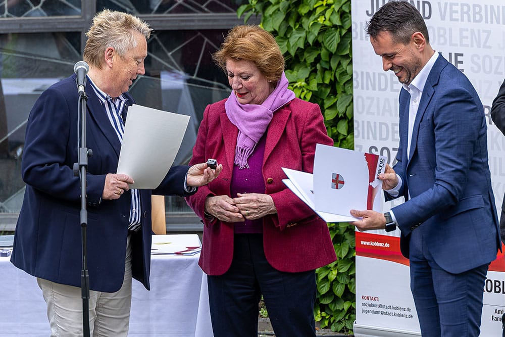 Die Stadt Koblenz verleiht jährlich eine Ehrennadel für soziales Engagement für Personen, die sich durch ihr besonderes soziales Engagement um die Gemeinschaft verdient gemacht haben. Am 16.Mai 2023 fand die diesjährige Verleihung für soziales Engagement 2022 im Innenhof des Rathausgebäudes II durch Oberbürgermeister Langner und Bürgermeisterin Mohrs statt.